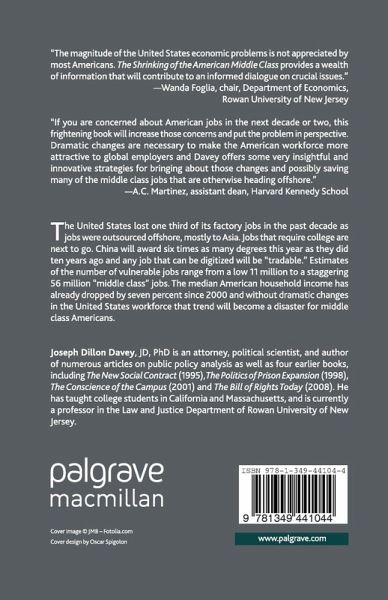 "If you are concerned about American jobs in the next decade or two, this frightening book will increase those concerns and put the problem in perspective. Dramatic changes are necessary to make the American workforce more attractive to global employers and Professor Davey offers some very insightful and innovative strategies for bringing about those changes and possibly saving many of the middle class jobs that are otherwise heading offshore." - A.C. Martinez, assistant dean, Harvard Kennedy School of Public Policy
