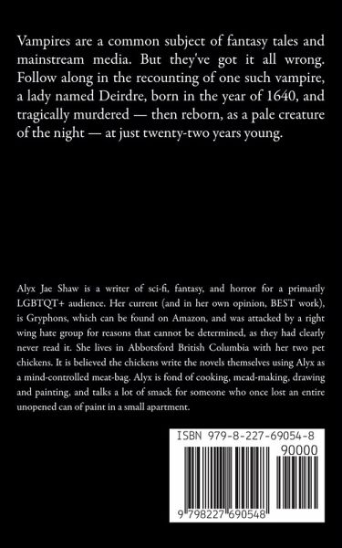 Vampires are a common subject of fantasy tales and mainstream media. But they've got it all wrong. Follow along in the recounting of one such vampire, a lady named Deirdre, born in the year of 1640, and tragically murdered - then reborn, as a pale creature of the night - at just twenty-two years young.