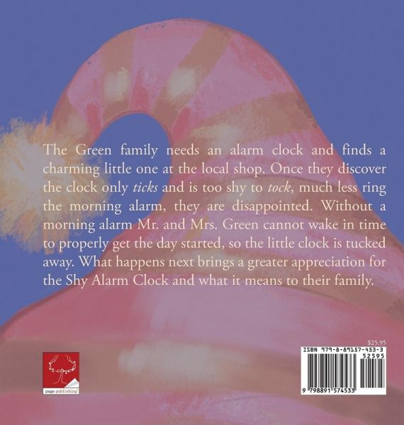 The Green family needs an alarm clock and finds a charming little one at the local shop. Once they discover the clock only ticks and is too shy to tock, much less ring the morning alarm, they are disappointed. Without a morning alarm Mr. and Mrs. Green cannot wake in time to properly get the day started, so the little clock is tucked away. What happens next brings a greater appreciation for the Shy Alarm Clock and what it means to their family.