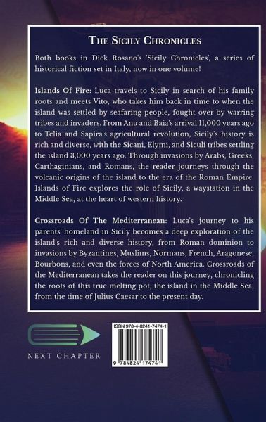 Both books in Dick Rosano's 'Sicily Chronicles', a series of historical fiction set in Italy, now in one volume! Islands Of Fire: Luca travels to Sicily in search of his family roots and meets Vito, who takes him back in time to when the island was settled by seafaring people, fought over by warring tribes and invaders. From Anu and Baia's arrival 11,000 years ago to Telia and Sapira's agricultural revolution, Sicily's history is rich and diverse, with the Sicani, Elymi, and Siculi tribes settling the island 3,000 years ago. Through invasions by Arabs, Greeks, Carthaginians, and Romans, the reader journeys through the volcanic origins of the island to the era of the Roman Empire. Islands of Fire explores the role of Sicily, a waystation in the Middle Sea, at the heart of western history. Crossroads Of The Mediterranean: Luca's journey to his parents' homeland in Sicily becomes a deep exploration of the island's rich and diverse history, from Roman dominion to invasions by Byzantines, Muslims, Normans, French, Aragonese, Bourbons, and even the forces of North America. Crossroads of the Mediterranean takes the reader on this journey, chronicling the roots of this true melting pot, the island in the Middle Sea, from the time of Julius Caesar to the present day.