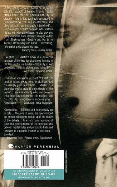 ‘A masterpiece of popularization’ Times Literary Supplement ‘A fascinating account, based on objective scientific research, of the ways in which mental states affect the individual’s liability to disease… Martin is a highly civilised scientist, who seasons his text with witty parentheses. He also provides many examples from literature, ranging widely from Shakespeare, Goethe and Hardy to Tolstoy, Dostoevsky and Kafka… Interesting, informative and a pleasure to read.’ ANTHONY STORR, Sunday Times ‘Excellent’ JON TURNEY, Financial Times ‘This most accessible account of a difficult subject blows away some prejudices and pleasingly justifies others… Martin is a biologist whose style is considerate of the layman…and it is a tribute to his own benignly infectious enthusiasm for his subject that his closing thoughts are encouraging… Remarkable.’ ALAN JUDD, Daily Telegraph ‘Compelling… Balanced and impressively up to date… The tone of voice, the open-minded but critical intelligence should uplift the quality of the debate… Martin’s lucid account of possible mechanisms of the connections between mental states and personality traits and illnesses is a notable triumph of his book… Excellent.’ RAYMOND TALLIS, Times Literary Supplement