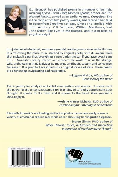 "Elizabeth Brunoski is a poet with a unique, rare voice that is immediate, spontaneous, intimate and memory-haunted on the one hand and yet sly, cool, ironic, analytic and worldly on the other as if she were not only distilling the brew of words out of a harvest of experience but intoxicating the reader poem by poem as well. It is impossible not to be mesmerized and enchanted as these poems work their magic on you. " Eugene Mahon