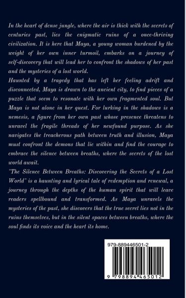 In the realm of Fae, where magic and mystery intertwine, a young woman named Maya is thrust into a world she never knew existed. As she grapples with the shocking revelations of her true heritage Maya must navigate a labyrinth of secrets, betrayal, and ancient power. Meanwhile, Maya's friends - Lily, Arthur, Gabriel, Juliet, Chloe, and Louis - embark on their own perilous journey, they venture through enchanted forests, crystal caves, and mystical temples to uncover the truth and save their world from impending doom. As they face illusions and challenges that test their resolve, their bonds of friendship and courage are put to the ultimate test. But as the group returns to Sorbonne, they discover a new, unsettling reality: they can see beyond normal human visions, hinting at even greater adventures and mysteries to come. "The Silence Between Breaths" is a spellbinding tale of magic, friendship, and self-discovery. This first part of the series sets the stage for an epic saga where choices shape destinies and the fight between light and dark unfolds in unexpected ways. Stay tuned for more thrilling installments as the journey continues. Join Maya and her friends as they navigate the intricate web of their fates, forging a path through darkness and light. The next chapters await, and the story is far from over.
