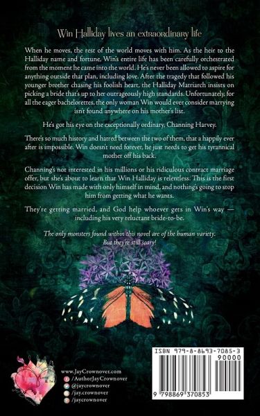 Win Halliday lives an extraordinary life. When he moves, the rest of the world moves with him. As the heir to the Halliday name and fortune, Win's entire life has been carefully orchestrated from the moment he came into the world. He's never been allowed to aspire for anything outside that plan, including love. After the tragedy that followed his younger brother chasing his foolish heart, the Halliday Matriarch insists on picking a bride that's up to her outrageously high standards. Unfortunately, for all the eager bachelorettes, the only woman Win would ever consider marrying isn't found anywhere on his mother's list. He's got his eye on the exceptionally ordinary, Channing Harvey. There's so much history and hatred between the two of them, that a happily ever after is impossible. Win doesn't need forever, he just needs to get his tyrannical mother off his back. Channing's not interested in his millions or his ridiculous contract marriage offer, but she's about to learn that Win Halliday is relentless. This is the first decision Win has made with only himself in mind, and nothing's going to stop him from getting what he wants. They're getting married, and God help whoever gets in Win's way - including his very reluctant bride-to-be. The only monsters found within this novel are of the human variety. But they're still scary!