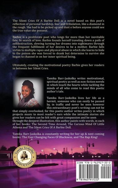 "The Silent Cries Of A Barbie" Doll is a novel based on this poet's reflection of personal hardship, fear and tribulation, like a diamond in the rough. She had to be picked up and dust ö before anyone could see the true value she possesses. Barbie is a proliferate poet who longs for more than her inevitable fate. In search of love. Barbie founds herself traveling down a path of self-destruction, slowing turning her dreams into nightmares through the frequent ful¿llment of her desires to be a mother. Barbie falls victim to multiple rapes and physical abuse in which she learns to hide to the poison she was forced to drank but determine to survive she began to channel in on her inner spiritual being. Ultimately, creating the motivational poetry Barbie gives her readers in between her Silent Cries.