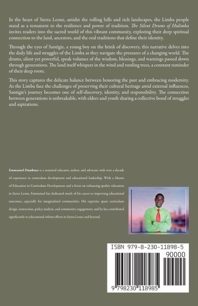 In the heart of Sierra Leone, amidst the rolling hills and rich landscapes, the Limba people stand as a testament to the resilience and power of tradition. The Silent Drums of Hulimba invites readers into the sacred world of this vibrant community, exploring their deep spiritual connection to the land, ancestors, and the oral traditions that define their identity. Through the eyes of Santigie, a young boy on the brink of discovery, this narrative delves into the daily life and struggles of the Limba as they navigate the pressures of a changing world. The drums, silent yet powerful, speak volumes of the wisdom, blessings, and warnings passed down through generations. The land itself whispers in the wind and rustling trees, a constant reminder of their deep roots. This story captures the delicate balance between honoring the past and embracing modernity. As the Limba face the challenges of preserving their cultural heritage amid external influences, Santigie's journey becomes one of self-discovery, identity, and responsibility. The connection between generations is unbreakable, with elders and youth sharing a collective bond of struggles and aspirations. The Silent Drums of Hulimba is more than a story-it is an exploration of identity, heritage, and the enduring spirit of the Limba people. Through the rhythm of the drums, readers will feel the pulse of a culture that refuses to be silenced, no matter the noise of the world. This book is a tribute to the power of oral storytelling and the unyielding commitment to preserve what matters most. A must-read for those interested in African culture, oral traditions, and the timeless connection between people, land, and ancestors.