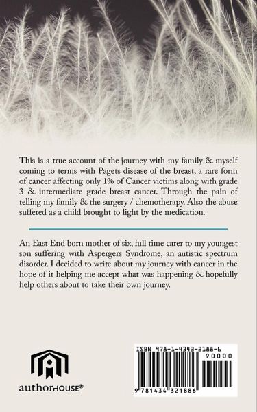 This is a true account of the journey with my family and myself coming to terms with Pagets disease of the breast, a rare form of cancer affecting only 1% of Cancer victims along with grade 3 and intermediate grade breast cancer. Through the pain of telling my family and the effects of surgery / chemotherapy. Also because of the strong pain relief medication the memories of abuse I suffered as a child was brought back from the deepest corners of my mind to be relived again in my nightmares.