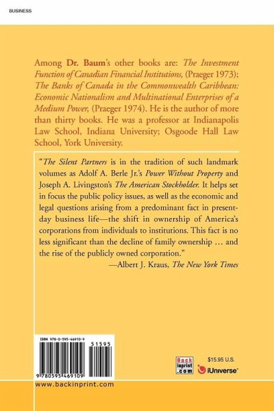 "The Silent Partners is in the tradition of such landmark volumes as Adolf A. Berle Jr.'s Power Without Property and Joseph A. Livingston's The American Stockholder. It helps set in focus the public policy issues, as well as the economic and legal questions arising from a predominant fact in present-day business life-the shift in ownership of America's corporations from individuals to institutions. This fact is no less significant than the decline of family ownership . and the rise of the publicly owned corporation." Albert J. Kraus, The New York Times