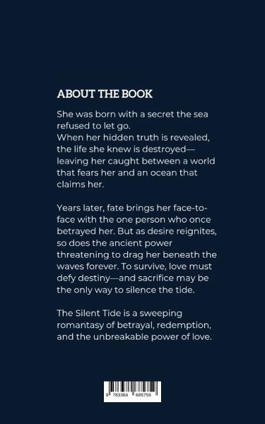 The Silent Tide is a sweeping romantasy about a young woman bound to the sea by a dangerous secret. When her hidden truth is revealed, she is forced into a struggle between destiny and desire. As love rekindles with someone from her past, she must face betrayal, sacrifice, and a deadly curse that could cost her everything.