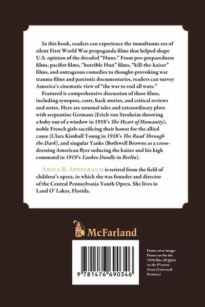 In this book, readers can experience the tumultuous era of silent First World War propaganda films that helped shape U.S. opinion of the dreaded "Huns." From pro-preparedness films pacifist films, "horrible Hun" films, "kill-the-kaiser" films, and outrageous comedies to thought-provoking war trauma films and patriotic documentaries, readers can survey America's cinematic view of "the war to end all wars." Featured is comprehensive discussion of these films, including synopses, casts, back stories, and critical reviews and notes. Here are unusual tales and extraordinary plots with serpentine Germans (Erich von Stroheim throwing a baby out of a window in 1918's The Heart of Humanity), noble French girls sacrificing their honor for the allied cause (Clara Kimball Young in 1918's The Road Through the Dark), and singular Yanks (Bothwell Browne as a cross-dressing American flyer seducing the kaiser and his high command in 1919's Yankee Doodle in Berlin).