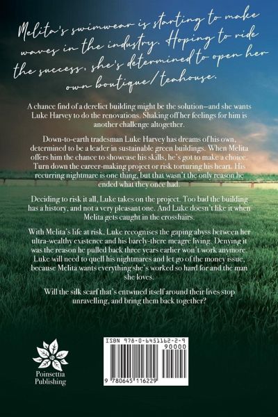 An unravelling silken scarf ... mysterious gold ... a love that refuses to fade. An emotional and unforgettable contemporary romance set in Australia. In the heat of the Australian tropics, Melita Van Der Meeliko is on the verge of everything she's ever wanted. Her swimwear line is starting to make waves, and she's ready to open the boutique-teahouse she's dreamed of. When she stumbles upon a forgotten building with haunting beauty and mysterious history, she knows it's the one - and she wants Luke Harvey to do the renovations. He walked away once before, leaving only silence and shattered dreams. Shaking off her feelings for him will be another challenge altogether. Down-to-earth tradesman Luke Harvey has dreams of his own, determined to be a leader in sustainable green buildings. When Melita offers him the chance to showcase his skills, his heart-and their past-give him no peace. Deciding to risk it all, Luke takes on the project. As sparks reignite and old wounds resurface, the building's dark secrets begin to emerge-putting Melita in danger and dragging them both into a mystery laced with greed, betrayal... and gold. Luke will do anything to keep her safe, even if it means tearing open the very scars that made him leave in the first place. With Melita's life hanging in the balance, the lies he told himself for years won't hold anymore. Because Melita isn't choosing between love and ambition-she's choosing both. And she wants him. Will the silk scarf that's entwined itself around their lives stop unravelling, and be enough to bring them back together?