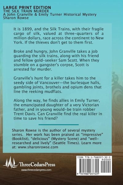 It’s 1899, and when his best friend is arrested for the murder of a notorious gangster, gentleman adventurer John Granville is determined to hunt down the real killer. To save his friend, Granville must dive into the seedy side of the city—the burlesque halls, gambling joints, and opium dens that line reeking mudflats. He finds allies along the way, including Emily Turner, the emancipated daughter of a very Victorian father. But with a fortune in Klondike gold and Chinese silk at stake, no-one is safe. Set on the Northwest Coast during the Klondike Era—when Vancouver, Seattle and San Francisco were gateways for Klondike gold and Chinese silk, The Silk Train Murder features strong characters and a well-researched and lively story.