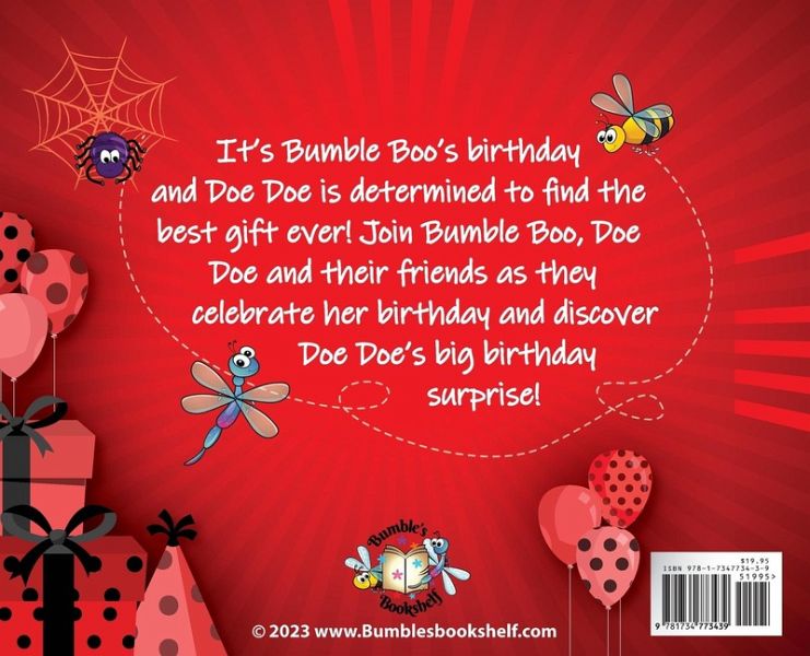 Bumble Boo is a silly little bee who loves to go on adventures with her best friend, Doe Doe, a dragonfly. Doe Doe makes sure that Bumble Boo has lots of fun on her adventures but stays safe. When it's Bumble Boo's birthday, Doe Doe has to plan an awesome birthday party and find the perfect present. Join these two, along with their friends, on a fantastic birthday adventure, full of fun surprises and, of course, birthday cake!