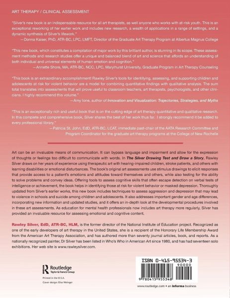 List of Figures. Turner, Foreword. Acknowledgements. Introduction and Theoretical Background. Part I: Draw a Story, Screening for Depression and Aggression. Background. Reliability, Validity, and Depression. Aggression and Depression. Studies of Clinical and Non-clinical Populations. Part II: The Silver Drawing Test of Cognition and Emotion. Why and How the SDT was Developed and Field Tested. Administering, Scoring, and Examples of Scored Responses. Reliability and Validity. Normative Data. Using the Silver Drawing Test with Clinical and Non-clinical Populations. Part III: Use of Both Assessments by Practitioners in Florida and Abroad. Use of Both Assessments by Art Therapists in the Miami-Dade County Public Schools in Florida. Use of Both Assessments by Practitioners Abroad. Part IV: Developmental Techniques and Concluding Observations. Art Techniques for Developing Cognitive Skills. Discussion and Conclusions. Part V: Appendices. Appendix A: Silver Drawing Test Materials. Appendix B: Draw A Story Test Materials. Appendix C: The 50 Drawings in the Stimulus Drawing Assessment. References. Index.