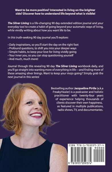Want to be more positive? Interested in living on the brighter side? Discover how to understand life beyond what is visible! Do you want more joy? Are you looking for deeper meaning? Do you wish for clarity? Bestselling author, podcaster, and holistic practitioner Jacqueline Pirtle has twenty-four years of experience helping thousands of clients to sync up with their magic--as featured in multiple publications and the documentary The Overly Emotional Child by Learning Success. Now she is here to give you a daily path to get your self and life in new and better ways! The Silver Lining is a life-changing 90 day extended edition journal, and your everyday tool to create a habit of going beyond your automatic ways of living while vividly writing about how you want life to be. Showing up as an informed YOU changes everything, because you will tap into a limitless amount of wisdom and into a life beyond your dreams. Most importantly, this lets you find your deeper meaning so you can BE and live as such. By consciously reading, thinking, feeling, and then journaling about the profound statements and questions Jacqueline highlights, you'll shift your existence to a wise frequency where your full potential and unlimited knowing is accessible. And by following the precepts within you can soon enjoy the benefits of better living because, no matter the circumstances, the sliver lining is always available to show you the light. In this truth seeking 90 day journal you'll explore: Daily inspirations, so you'll start the day on the right foot Profound questions, to shift you into your deeper ways Simple habits, to keep your love for more going Your inner you, so you can stop questioning yourself And much, much more! Journal through this revealing 90 day The Silver Lining workbook daily and you'll go straight to wanting more of everything in life-to finding more of these amazing silver linings. If you like to live head on, get yourself onto the bliss side fast, and enjoy journaling, then you'll love Jacqueline Pirtle's profound teachings. Want to keep your mojo going? Simply grab the next journal in this series! Buy this 90 day journal The Silver Lining to start living deeper today!