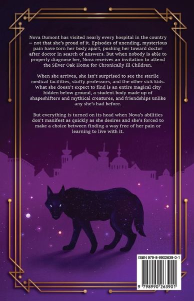 Nova Dumont has visited nearly every hospital in the country - not that she's proud of it. Episodes of unending, mysterious pain have torn her body apart, pushing her toward doctor after doctor in search of answers. But when nobody is able to properly diagnose her, Nova receives an invitation to attend the Silver Oak Home for Chronically Ill Children. When she arrives, she isn't surprised to see the sterile medical facilities, stuffy professors, and the other sick kids. What she doesn't expect to find is an entire magical city hidden below ground, a student body made up of shapeshifters and mythical creatures, and friendships unlike any she's had before. But everything is turned on its head when Nova's abilities don't manifest as quickly as she desires and she's forced to make a choice between finding a way free of her pain or learning to live with it.