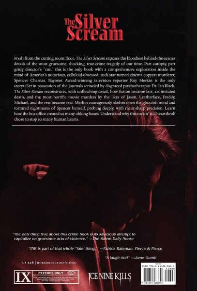 They say it’s hard getting into the movies…try getting out! Fresh from the cutting room floor, The Silver Scream exposes the bloodiest behind-the-scenes details of the most gruesome, shocking, true-crime tragedy of our time. Part autopsy, part grisly director’s “cut,” this is the only book with a comprehensive exploration inside the mind of America’s notorious, celluloid-obsessed, rock star turned cinema-copycat murderer, Spencer Charnas. Bayonet Award–winning television reporter Roy Merkin is the only storyteller in possession of the journals scrawled by disgraced psychotherapist Dr. Ian Black. The Silver Scream reconstructs, with unflinching detail, how fiction became fact, art imitated death, and the most horrific movie murders by the likes of Jason, Leatherface, Freddy, Michael, and the rest became real. Merkin courageously slashes open the ghoulish mind and tortured nightmares of Spencer himself, probing deeply, with razor-sharp precision. Learn how the box office created so many oblong boxes. Understand why this rock n’ roll heartthrob chose to stop so many human hearts.