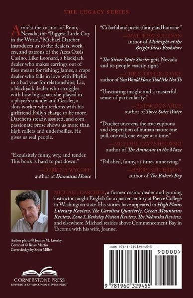 Amidst the casinos of Reno, Nevada, the "Biggest Little City in the World," Michael Darcher introduces us to the dealers, workers, and patrons of the Aces Oasis Casino. Like Leonard, a blackjack dealer who makes earrings out of flies meant for fishing; James, a craps dealer who falls in love with Phyllis in a bad year for relationships; Liz, a blackjack dealer who struggles with how big a part she played in a player's suicide; and Gessler, a slots worker who reckons with his girlfriend Polly's charge to be more. Darcher's steady, assured, and compassionate prose shows us more than high rollers and underbellies. He gives us real people.