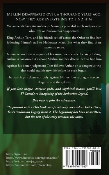 Merlin disappeared over a thousand years ago. Now they risk everything to find him. Vivian needs King Arthur's help. Nimue, a powerful witch and priestess who lives on Avalon, has disappeared. King Arthur, Tom, and his friends set off across the Other to find her, following Nimue's trail to Holloways Meet. But what they find there makes no sense. Nimue seems to have a quest of her own, one she's deliberately hiding. Arthur is convinced it's about Merlin, and he's determined to find him. Against his better judgement Tom follows Arthur on a dangerous trip that could end his new life before it's even begun. The search pits them not only against Nimue, but a dragon sorcerer, dragons, and the sylphs. If you love magic, ancient gods, and mythical beasts, you'll love TJ Green's re-imagining of the Arthurian legend. Buy now to join the adventure. *Important Note. This book was previous published as Twice Born, Tom's Arthurian Legacy Book 2. It has a new beginning, but the rest of the story remains the same.