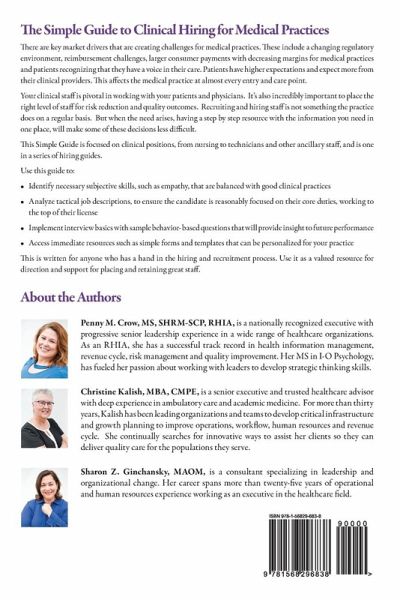 There are key market drivers that are creating challenges for medical practices. These include a changing regulatory environment, reimbursement challenges, larger consumer payments with decreasing margins for medical practices and patients recognizing that they have a voice in their care. Patients have higher expectations and expect more from their clinical providers. This affects the medical practice at almost every entry and care point. Your clinical staff is pivotal in working with your patients and physicians. It’s also incredibly important to place the right level of staff for risk reduction and quality outcomes. Recruiting and hiring staff is not something the practice does on a regular basis. But when the need arises, having a step by step resource with the information you need in one place, will make some of these decisions less difficult. This Simple Guide is focused on clinical positions, from nursing to technicians and other ancillary staff, and is one in a series of hiring guides. Use this guide to: Identify necessary subjective skills, such as empathy, that are balanced with good clinical practices Analyze tactical job descriptions, to ensure the candidate is reasonably focused on their core duties, working to the top of their license Implement interview basics with sample behavior-based questions that will provide insight to future performance Access immediate resources such as simple forms and templates that can be personalized for your practice This is written for anyone who has a hand in the hiring and recruitment process. Use it as a valued resource for direction and support for placing and retaining great staff.