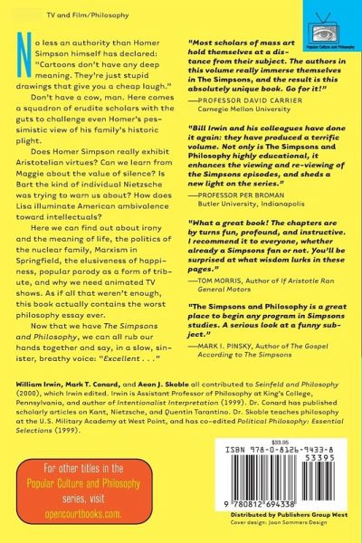 A light-hearted introduction to philosophy through the antics of the Simpsons, television's animated family. The contributors discuss the thought of key philosophers including Aristotle, Sartre and Kant, and tackle issues like irony and the meaning of life, and American anti-intellectualism.