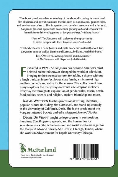 Karma Waltonen teaches professional writing, literature, popular culture (including The Simpsons), and stand-up comedy at the University of California, Davis. She is the president of the Margaret Atwood Society and edits Margaret Atwood Studies. Denise Du Vernay taught college courses in composition, literature, The Simpsons, speech, and the humanities for seventeen years. She is the treasurer and social media manager for the Margaret Atwood Society. She lives in Chicago, Illinois, where she works in Advancement for Loyola University Chicago.