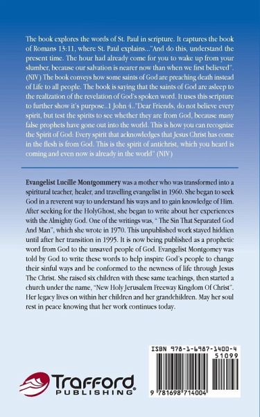 The book explores the words of St. Paul in scripture. It captures the book of Romans 13:11, where St. Paul explains..."And do this, understand the present time. The hour had already come for you to wake up from your slumber, because our salvation is nearer now than when we first believed".(NIV) The book conveys how some saints of God are preaching death instead of Life to all people. The book is saying that the saints of God are asleep to the realization of the revelation of God's spoken word. It uses this scripture to further show it's purpose..1 John 4.."Dear Friends, do not believe every spirit, but test the spirits to see whether they are from God, because many false prophets have gone out into the world. This is how you can recognize the Spirit of God: Every spirit that acknowledges that Jesus Christ has come in the flesh is from God. This is the spirit of antichrist, which you heard is coming and even now is already in the world" (NIV)