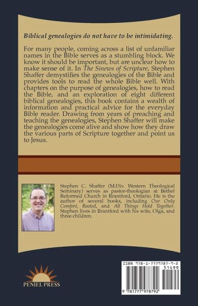 Biblical genealogies do not have to be intimidating. For many people, coming across a list of unfamiliar names in the Bible serves as a stumbling block. We know it should be important, but are unclear how to make sense of it. In The Sinews of Scripture, Stephen Shaffer demystifies the genealogies of the Bible and provides tools to read the whole Bible well. With chapters on the purpose of genealogies, how to read the Bible, and an exploration of eight different biblical genealogies, this book contains a wealth of information and practical advice of the everyday Bible reader. Drawing from years of preaching and teaching the genealogies, Stephen Shaffer will make the genealogies come alive and show how they draw the various parts of Scripture together and point us to Jesus.