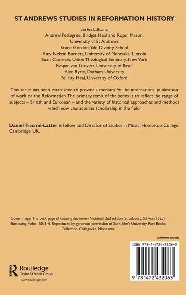 Drawing upon a range of sources, this book explores the part played by music, especially group-singing, in the unfolding of the Protestant Reformation in Strasbourg. It considers both ecclesiastical and 'popular' songs in the city, examining how both genres fitted into people's lives during this time of strife, and how the provision and dissemination of music as a whole affected, and in turn was affected by, the new ecclesiastical arrangement.