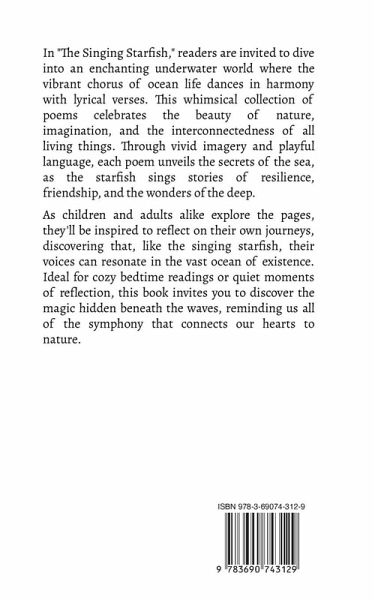 In "The Singing Starfish," readers are invited to dive into an enchanting underwater world where the vibrant chorus of ocean life dances in harmony with lyrical verses. This whimsical collection of poems celebrates the beauty of nature, imagination, and the interconnectedness of all living things. Through vivid imagery and playful language, each poem unveils the secrets of the sea, as the starfish sings stories of resilience, friendship, and the wonders of the deep. As children and adults alike explore the pages, they'll be inspired to reflect on their own journeys, discovering that, like the singing starfish, their voices can resonate in the vast ocean of existence. Ideal for cozy bedtime readings or quiet moments of reflection, this book invites you to discover the magic hidden beneath the waves, reminding us all of the symphony that connects our hearts to nature.