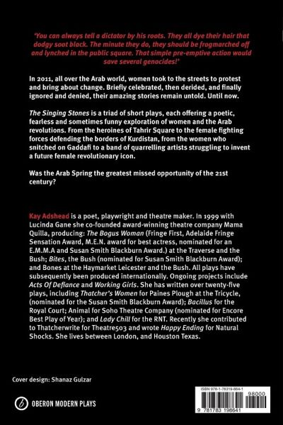 In 2011, all over the Arab World, veiled women took to the streets to protest. Their calls for change were briefly celebrated, soon derided, and eventually ignored. For the first time on stage, The Singing Stones gives voice to their extraordinary stories. These are the women who snitched on Gaddafi, marched on Tahrir Square, defended the bloody borders of Kurdistan, and became the heroines of our century's greatest struggle. But who are they? What led them to revolution? And where do they go from here? The Singing Stones is a fearless exploration of women and the Arab Spring.