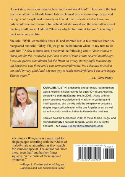 The author estimates she has observed 8,000-plus singles as they attended her events in search of their significant other. This book gives you an inside look into the minds of the attendees as well as counseling and advice from Ms. Austin on the do's and don'ts of dating.