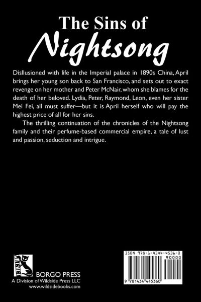 Disllusioned with life in the Imperial palace in 1890s China, April brings her young son back to San Francisco, and sets out to exact revenge on her mother and Peter McNair, whom she blames for the death of her beloved. Lydia, Peter, Raymond, Leon, even her sister Mei Fei, all must suffer--but it is April herself who will pay the highest price of all for her sins. The thrilling continuation of the chronicles of the Nightsong family and their perfume-based commercial empire, a tale of lust and passion, seduction and intrigue.