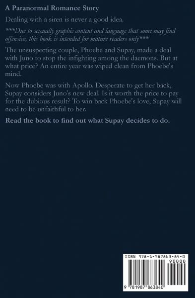 A Paranormal Romance Story Dealing with a siren is never a good idea. ***Due to sexually graphic content and language that some may find offensive, this book is intended for mature readers only*** The unsuspecting couple, Phoebe and Supay, made a deal with Juno to stop the infighting among the daemons. But at what price? An entire year was wiped clean from Phoebe's mind. Now Phoebe was with Apollo. Desperate to get her back, Supay considers Juno's new deal. Is it worth the price to pay for the dubious result? To win back Phoebe's love, Supay will need to be unfaithful to her. Read the book to find out what Supay decides to do.