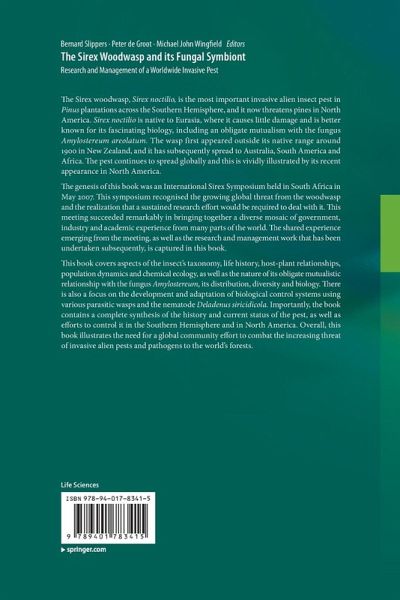 Preface.- Dedication.- 1. Sirex systematics; problems and solutions.- 2. Life history and biology of Sirex noctilio.- 3. Susceptibility and response of pines to Sirex noctilio.- 4. The population dynamics of Sirex noctilio F.: the influence of diapause, spatial aggregation and flight potential on woodwasp outbreaks and spread.- 5. The woodwasp Sirex noctilio and its associated fungus Amylostereum areolatum in Europe.- 6. The genetics of Amylostereum species associated with Siricids.- 7. Siricid woodwasps and their fungal symbionts in Asia, specifically those occurring in Japan.- 8. Parasitoids in the management of Sirex: Looking back and looking ahead.- 9. Factors affecting the efficacy of Deladenus siricidicola in biological control systems.- 10. Ecological considerations in using Deladenus siricidicola for the biological control of Sirex noctilio in North America.- 11. The chemical ecology of Sirex noctilio.- 12. The use of kairomone lures for the detection of Sirex noctilio in susceptible Pinus radiata plantations in Australia.- 13. The Sirex woodwasp in New Zealand: History and current status.- 14. Sirex woodwasp in Australia: current management strategies, research and emerging issues.- 15. The ecology and biological control of the woodwasp, Sirex noctilio, in Patagonia, Argentina.- 16. The woodwasp Sirex noctilio in Brazil: monitoring and control.- 17. Surveillance and control of the Sirex woodwasp: The Chilean experience.- 18. The control of the Sirex woodwasp in diverse environments: The South African experience.- 19.Sirex, surveys and management: Challenges of having Sirex noctilio in North America.- 20. Sirex research and management: Future prospects.