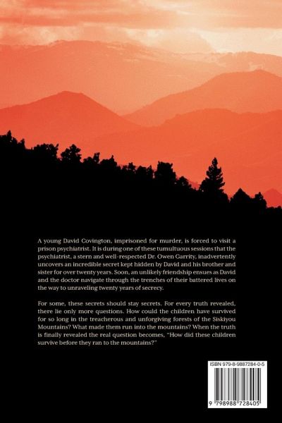 A Young David Covington , imprisoned for murder, is forced to visit a prison psychologist. It is during one of these tumultuous sessions, that the Psychologist, a stern and well respected, Dr. Owen Garrity inadvertently uncovers a secret kept hidden for over twenty years by David, his older brother Tommy and their younger sister Anna. Incredibly the secret David and his siblings share is only a small part of the mystery that Owen Garrity unravels. Owen Garrity admires the honesty and reticent demeanor that he sees in the young inmate. And David Covington is surprised to find that he looks forward to his sessions with the distinguished doctor. But when the Doctor asks David about his childhood, the answers appear a little too rehearsed for the seasoned doctor. With a simple telephone call to a small town sheriffs department, twenty years of secrecy are unwittingly exposed. When the small town detective believes David is not who he claims to be; David is forced to tell the truth about what happened to him, and his brother and sister. A sad a painful journey transcends everyone's imagination as David tells Dr. Garrity the anguish of his childhood and the tales of his years living in the mountains. Tears, anger, laughter and despair carry David through every step of his forced foray into his purposely forgotten past. Owen Garrity accompanies David through the savage trepidation of his childhood only to discover that in spite of uncovering the confessions to more unsolved crimes, crimes that could keep David imprisoned for the rest of his life, Owen Garrity finds himself believing that David should never have been imprisoned at all.