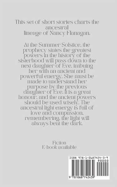 At the Summer Solstice, the prophecy states the greatest powers in the history of the sisterhood will pass down to the next daughter of Eve, imbuing her with an ancient and powerful energy. She must be made to understand her purpose by the previous daughter of Eve. It is a great honour, and the ancient powers should be used wisely. The ancestral light energy is full of love and compassion remembering, the light will always beat the dark. In the Sisterhood, we are introduced to four separate women. All of them must face the challenges of the century they live in, and the patriarchal society which dictates their lives. But more than that, they are destined to fight evil, utilising their ancestral power for the good of humanity. First, we meet Sidonie in 1307, medieval times. Her best friend is Xavier, a Knights Templar. It is the time when the King of France decrees all Knights Templar must be captured and the Order disbanded. Sidonie has used her light energy gift for some time to fight alongside Xavier, and is heart-broken at the decree. We find her bravely carrying on without Xavier, to battle a satanic group, where she encounters the demon, Azazel, the right-hand demon to the devil. She must fight the battle of her life to save someone else's. Will she succeed? Then we meet Angelique in the 1500s. She is a potter in her own right, but her abusive husband tries to do away with her and their unborn child. She must fight for her life, and discovers her own ancestral gift at a pivotal moment. Her daughter, Avignon, is due to inherit the ancestral gift at sixteen, but at twelve, she displays signs that Azazel is coming after her, wanting to take her power for his own nefarious deeds. Angelique yet again, has to fight for her life and that of her daughter. The third amazing daughter of Eve whom we meet is Gertrude. It's the 1800s, and her parents emigrated with her to America after the potato famine in Ireland. Unfortunately, America is in turmoil with the civil war between the North and the South brewing. Gertrude meets heartache, not once but twice, losing her best friend, then her parents return to Ireland, promising to return to collect her, but due to ill health and eventual death, never do so. As an adult, she herself returns to Ireland, to retrace their footsteps. She gains a job as a cook in a workhouse, and is horrified by the deprivation the children are suffering. Through holy relics passed down to her, she is able to save the children of the workhouse. Finally we meet Siobhan. She is a mother of eight children, and this is during the Second World War. Ireland is neutral during the war, but that does not deter Siobhan from saving as many as she can. She defeats a fifth columnist, and she saves an English airman from internment. She never tells her daughter Nancy of her heroic exploits during the war, nor does she explain to Nancy about the ancestral light gift which is handed down. These brave women's stories will inspire and uplift, and some of those situations are similar even today.