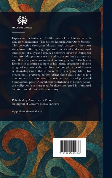 Experience the brilliance of 19th-century French literature with Guy de Maupassant's "The Sisters Rondoli, And Other Stories." This collection showcases Maupassant's mastery of the short story form, offering a glimpse into the social and emotional landscapes of a bygone era. A celebrated figure in European literature, Maupassant's translated works continue to resonate with their sharp observations and enduring themes. "The Sisters Rondoli" is a prime example of his talent, providing a diverse range of narratives that explore the complexities of human relationships and the intricacies of everyday life. This meticulously prepared edition brings these classic stories to a new audience, preserving the original spirit and power of Maupassant's prose. A significant contribution to literary fiction, this collection is a must-read for those interested in translated literature and the art of the short story. This work has been selected by scholars as being culturally important, and is part of the knowledge base of civilization as we know it. This work is in the public domain in the United States of America, and possibly other nations. Within the United States, you may freely copy and distribute this work, as no entity (individual or corporate) has a copyright on the body of the work. Scholars believe, and we concur, that this work is important enough to be preserved, reproduced, and made generally available to the public. We appreciate your support of the preservation process, and thank you for being an important part of keeping this knowledge alive and relevant.