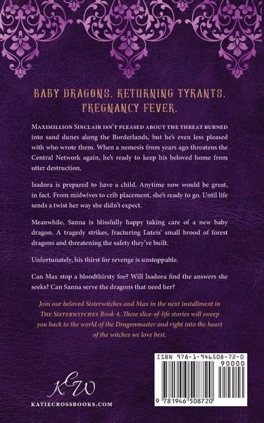 Baby dragons. Returning tyrants. Pregnancy fever. Maximillion Sinclair isn't pleased about the threat burned into sand dunes along the Borderlands, but he's even less pleased with who wrote them. When a nemesis from years ago threatens the Central Network again, he's ready to keep his beloved home from utter destruction. Isadora is prepared to have a child. Anytime now would be great, in fact. From midwives to crib placement, she's ready to go. Until life sends a twist her way she didn't expect. Meanwhile, Sanna is blissfully happy taking care of a new baby dragon. A tragedy strikes, fracturing Luteis' small brood of forest dragons and threatening the safety they've built. Unfortunately, his thirst for revenge is unstoppable. Can Max stop a bloodthirsty foe? Will Isadora find the answers she seeks? Can Sanna serve the dragons that need her? Join our beloved Sisterwitches and Max in the next installment in THE SISTERWITCHES Book 4. These slice-of-life stories will sweep you back to the world of the Dragonmaster and right into the heart of the witches we love best.