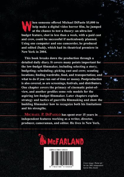 When someone offered Michael DiPaolo $5,000 to help make a Digital Video horror film, he jumped at the chance to test a theory: an ultra-low budget feature, shot in less than a week, with a paid cast and crew, could be successful if meticulously planned. Using one computer and one camcorder, he produced and edited Daddy, which had its theatrical premier in New York City in 2004. This book breaks down the production through a detailed daily diary, emphasizing that the most important aspects of successful producing are careful planning and camaraderie in the group. The work covers many points important for the low-budget filmmaker, including selecting a story; budgeting; scheduling; picking cast and crew; scouting locations; finding wardrobe, food, and transportation; and what to do if you run out of time or money. Postproduction is also covered (editing, computer work, and sound design), as is the result of all this hard work: screenings, festivals, and distributors. One chapter covers the primacy of cinematic point-of-view, and another profiles some role models for the aspiring low-budget filmmaker: Edgar Ulmer, Val Lewton, Roger Corman, John Cassavetes, Ed Wood, Jr., and Jean-Luc Godard. Later chapters explain strategy and tactics of guerrilla filmmaking and show the budding filmmaker how to recognize both his limitations and his strengths.