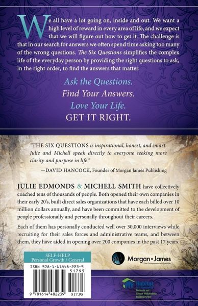 We all have a lot going on, inside and out. We want a high level of reward in every area of life, and we expect to figure out how to get it. The challenge is that in our search for answers we often spend time asking too many of the wrong questions. "The Six Questions" simplifies the complex life of the everyday person by providing the right questions to ask, in the right order, to find the answers that matter.