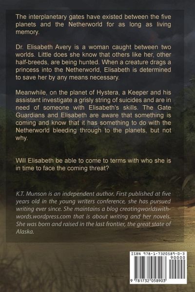 The interplanetary gates have existed between the five planets and the Netherworld for as long as living memory. Dr. Elisabeth Avery is a woman caught between two worlds. Little does she know that others like her, other half-breeds, are being hunted. When a creature drags a princess into the Netherworld, Elisabeth is determined to save her by any means necessary. Meanwhile, on the planet of Hystera, a Keeper and his assistant investigate a grisly string of suicides and are in need of someone with Elisabeth's skills. The Gate Guardians and Elisabeth are aware that something is coming and know that it has something to do with the Netherworld bleeding through to the planets, but not why. Will Elisabeth be able to come to terms with who she is in time to face the coming threat?