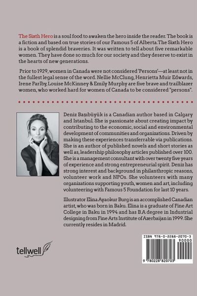 The Sixth Hero is a soul food to awaken the hero inside the reader. The book is a fiction and based on true stories of our Famous 5 of Alberta.The Sixth Hero is a book of splendid braveries. It was written to tell about five remarkable women. They have done so much for our society and they deserve to exist in the hearts of new generations. Prior to 1929, women in Canada were not considered 'Persons'—at least not in the fullest legal sense of the word. Nellie McClung, Henrietta Muir Edwards, Irene Parlby, Louise McKinney & Emily Murphy are five brave and trailblazer women, who worked hard for women of Canada to be considered "persons".