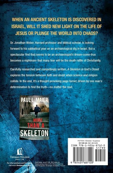 When an ancient skeleton is discovered in Israel, will it shed new light on the life of Jesus or plunge the world into chaos? Dr. Jonathan Weber, Harvard professor and biblical scholar, is looking forward to his sabbatical year on an archaeological dig in Israel. But a spectacular find that seems to be an archaeologist's dream-come-true becomes a nightmare that many fear will be the death rattle of Christianity. Carefully researched and compellingly written, A Skeleton in God's Closet explores the tension between faith and doubt when science and religion collide. In the end, it's a thought-provoking page-turner, driven by one man's determination to find the truth--no matter the cost.
