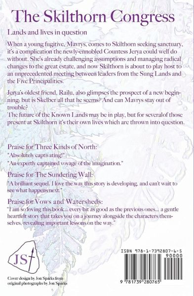 Lands and lives in question When a young fugitive, Mavrys, comes to Skilthorn seeking sanctuary, it's a complication the newly-ennobled Countess Jerya could well do without. She's already challenging assumptions and managing radical changes to the great estate, and now Skilthorn is about to play host to an unprecedented meeting between leaders from the Sung Lands and the Five Principalities. Jerya's oldest friend, Railu, also glimpses the prospect of a new beginning; but is Skelber all that he seems? And can Mavrys stay out of trouble? The future of the Known Lands may be in play, but for some of the people at Skilthorn it's their own lives which are thrown into question.