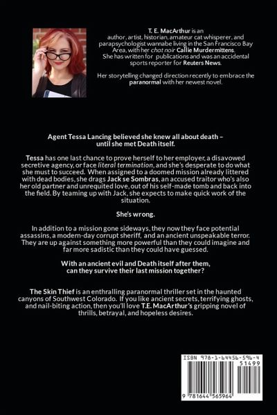 T. E. MacArthur, author, artist, historian, amateur cat whisperer, and parapsychologist wannabe lives in the San Francisco Bay Area with her cat, Miss Callie Murdermittens. She wrote the standout Steampunk series, The Volcano Lady, and the classic, one-shilling serial, The Gaslight Adventures of Tom Turner. She's even written for several specialized publications, anthologies, and was an accidental sports reporter for Reuters News.A Place of Fog and Murder is her Noir-Punk mystery, bringing a fantasy sci-fi 1930s San Francisco to life with her tough-as-nails femme-fatale-detective, Lou Tanner P.I., through exciting car chases and Chandleresque witty repartee.Her storytelling dramatically shifted direction recently to embrace the paranormal, her lifelong obsession, with the creation of her newest novel, The Skin Thief, set in the Four Corners region of Colorado, not too far from where she grew up.You can find her on Facebook, Goodreads, or at www.TEMacArthur.com.