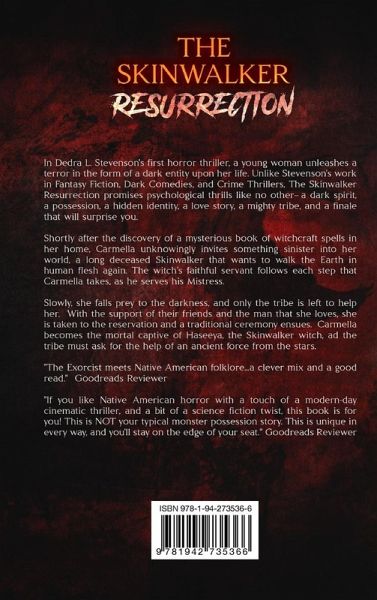 In Dedra L. Stevenson's First Horror Thriller, The Skinwalker: Resurrection, a Dark Entity Emerges with Terrifying Consequences. When Carmella stumbles upon an ancient book of witchcraft spells in her home, she unknowingly releases a terrifying Navajo Skinwalker-an evil spirit hungry to return to life in human form. This supernatural horror tale promises psychological thrills, delving into dark magic, spirit possession, hidden identities, and forbidden love, all set against the rich and haunting backdrop of Navajo culture. As the skinwalker's sinister influence over Carmella grows, she is drawn deeper into the darkness, becoming a mortal captive of Haseeya, a powerful witch. With her friends, her true love, and the tribe's ancient traditions as her only hope, Carmella embarks on a journey to confront the evil that has invaded her world. The Navajo tribe gathers to perform a sacred ritual, seeking aid from a celestial force to fight the malevolent spirit before it's too late. The Skinwalker: Resurrection is a chilling blend of horror, Navajo legend, and suspense that builds to an unforgettable climax, marking Stevenson's leap from fantasy fiction and courtroom drama into the realms of supernatural terror.