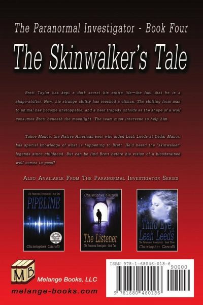 Brett Taylor has kept a dark secret his entire life-the fact that he is a shape-shifter. Now, his strange ability has reached a climax. The shifting from man to animal has become unstoppable, and a near tragedy unfolds as the shape of a wolf consumes Brett beneath the moonlight. The team must intervene to help him. Tahoe Manoa, the Native American seer who aided Leah Leeds at Cedar Manor, has special knowledge of what is happening to Brett. He'd heard the "skinwalker" legends since childhood. But can he find Brett before his vision of a bloodstained wolf comes to pass?
