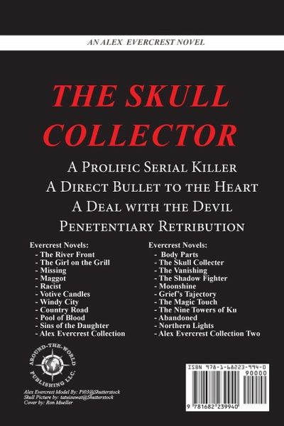 The Skull Collector Alex walked slowly from room to skull filled room as she tried to contain her emotions. In the back most room she came upon the skull of the first victim resting on the tallest pedestal. She tried to comprehend how any person's mind could be so twisted as to do what this serial killer had done. She now understood the ineffectiveness of the police information systems. Johnnie's hacking ability had allowed her to understand the magnitude the serial killings, who the killer was and the properties he possessed. Now she had the evidence, but she did not have the killer. She accelerated the investigation by interviewing the parents of the first victim and the families of the three most recent victims. The investigation of the house and the farm that the killer possessed confirmed that the killings had gone back more than fifteen years. While searching the farm, she was shot in the chest and only her Kevlar vest saved her. Immediately after the discovery of what she called the "Museum of Horror," she was taken to the hospital and put into intensive care. The killer's attempt to kill her in her hospital bed failed. She then decided that she was going to bring him in ensure that he stood trial for the murders he had committed. She and her team figure out where the killer is headed. She wants to avoid spending time working through a legal extradition process between the state where the killer has gone and Ohio so she captures the killer and brings him back. Once in front of the judge the killer is put into a high security prison to await his trial. Somehow the prison population learns the details of his crime and they sentence him to their version of justice. The forty third head is his and is found on the end of a baseball bat on the pitching mound where he pitched a winning game. Alex comments that he has gone to see his master.