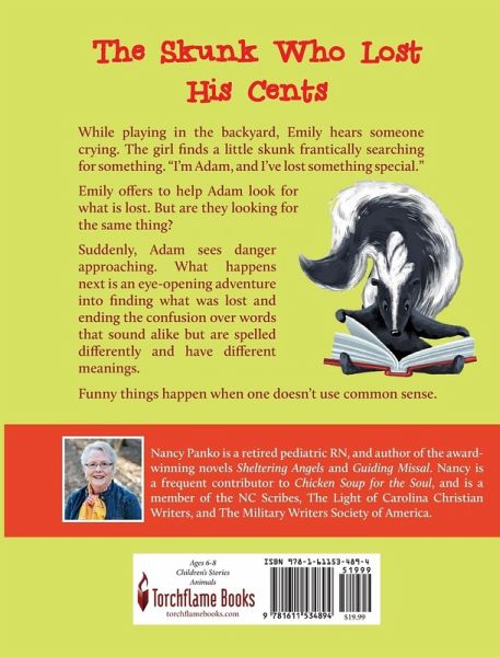 Emily is playing on her swing in the backyard when she sees movement near the porch. Dirt is flying through the lattice work to make a pile on the grass. Someone, or something, is digging under the porch! She stops to investigate and encounters a small, sad skunk named Adam. He's lost something important. Emily sets out to help him. We have all been confused by words that sound the same but have different meanings and spellings. This charming story is perfect for kids learning the differences between such words. The whimsical tale is followed by a list of some common words that sound alike but are spelled differently and have different meanings. Also included are several Fun Facts about skunks and an easy recipe for a tasty snack to make with a grown-up.